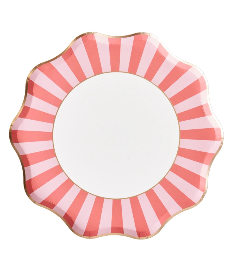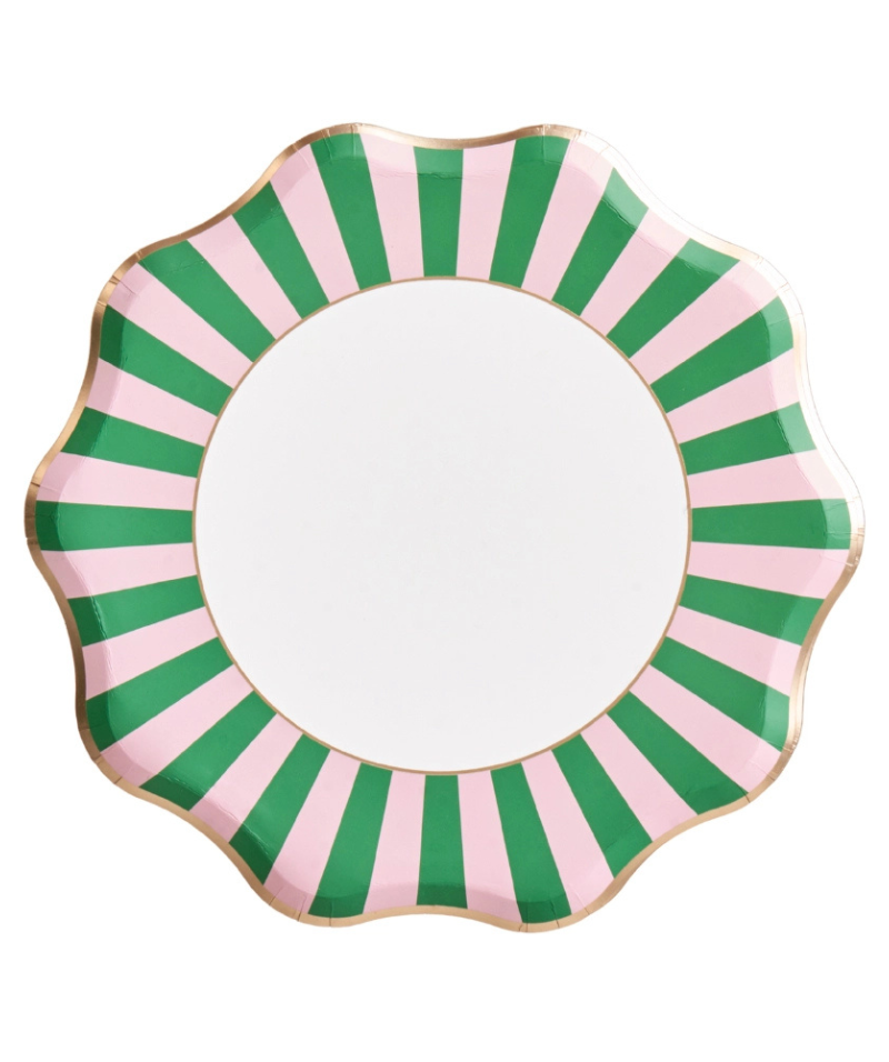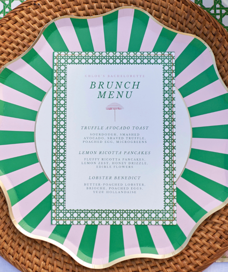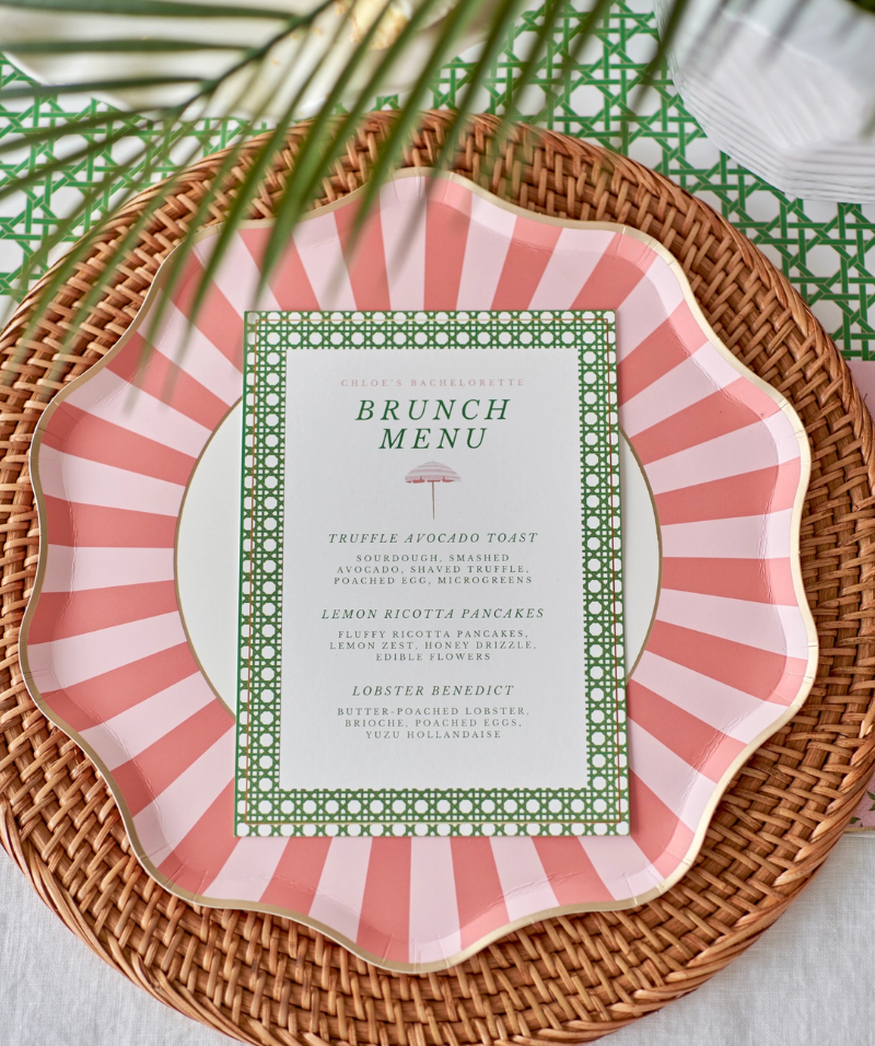 Capture the spirit of island elegance with our Palm Breeze Stripe Dinner Plates. Adorned with crisp cabana stripes and a lively mix of bright pinks and vibrant greens, this design strikes the perfect balance between tropical glamour and laid-back coastal charm. Whether you’re hosting a chic poolside brunch, an intimate dinner party, a stylish bridal shower, or a lively summer soirée, these plates set the stage for unforgettable gatherings with effortless style.